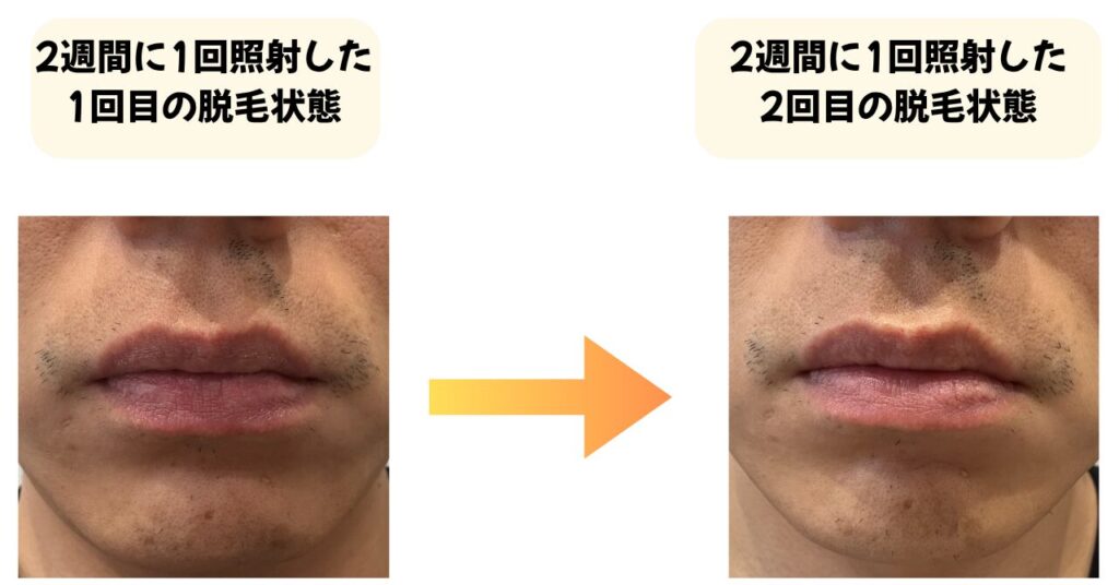 前回は、2週間に1回の照射でもヒゲの濃さや伸び方に変化があることを実感できました。